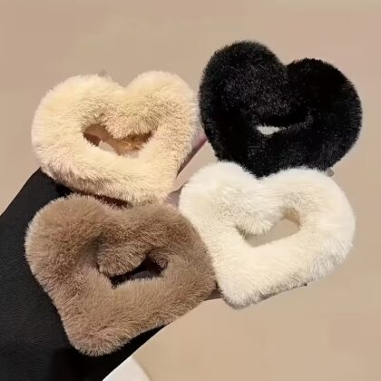 TR Creation Furry Heart Hair Claw Clip for Women & Girls Soft Plush Cute Heart Shape Hair Accessory.