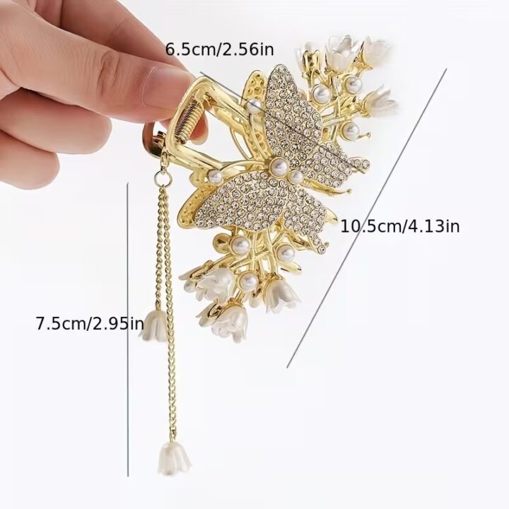 The TR Creation Butterfly Metal Hair Claw is crafted for women who want elegance paired with functionality. Designed with a stylish butterfly metal frame, it offers a strong, non-slip grip that holds medium to thick hair securely throughout the day. It adds a touch of sophistication to any hairstyle, making it perfect for office wear, college, parties, festive occasions, and daily use. Made from high-quality metal, it is durable, lightweight, and hair-friendly.